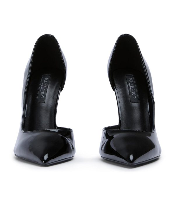 For a court shoe that exudes femininity look no further than the Alyx stiletto heel. Showcasing a perfectly pointed toe-shape, these pump shoes are designed with an ultra-high stiletto heel, a curved vamp and is finished with a black patent hue. Pair with fitted pants and a blazer for a corporate work shoe option.