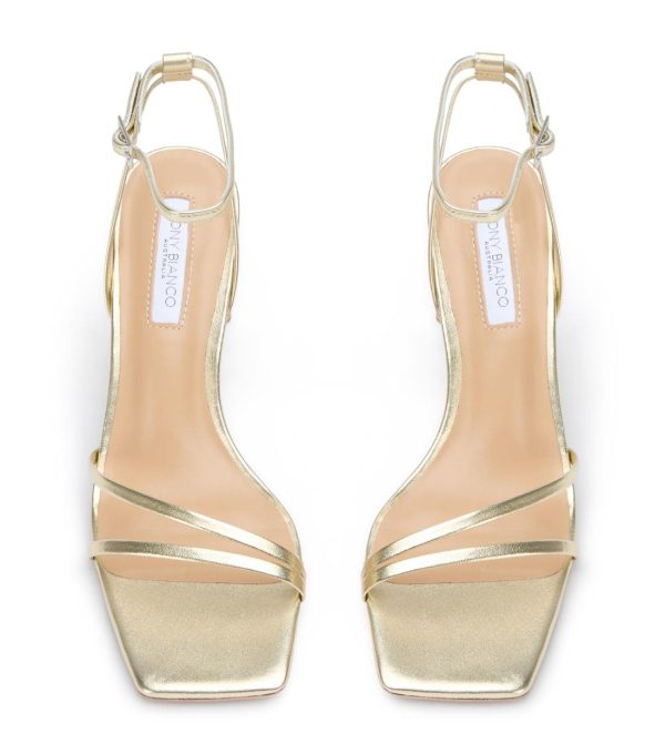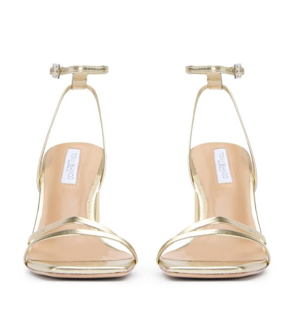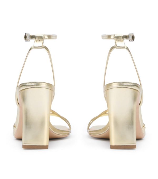 Complete your party look with our Corso strappy heels in gold nappa. Designed with slender foot-framing straps, an adjustable and secure ankle strap, and is finished with a mid-height stiletto heel.
