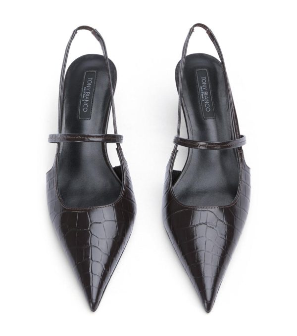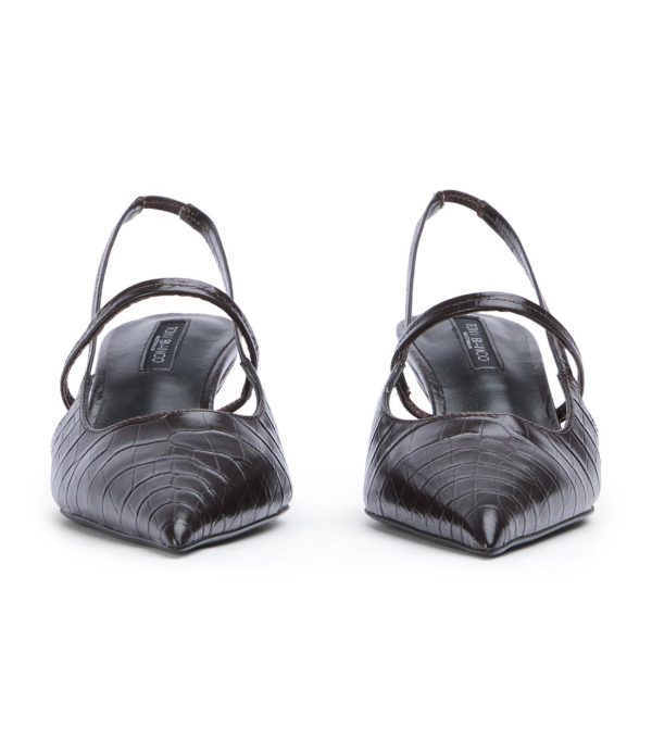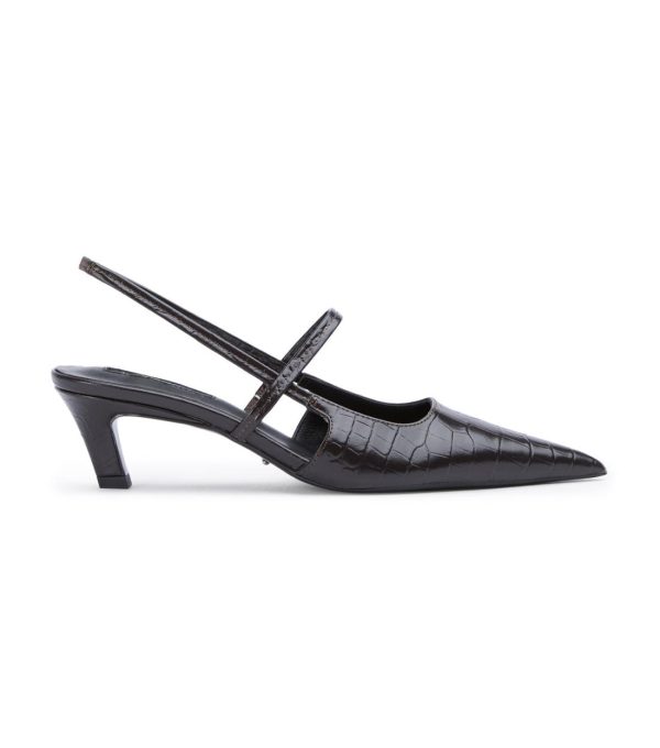 Designed with sleek strap detailing and croc leather, Kayla embodies modern sophistication. Featuring a pointed-toe, and slingback design this kitten heel captures the epitome of style.