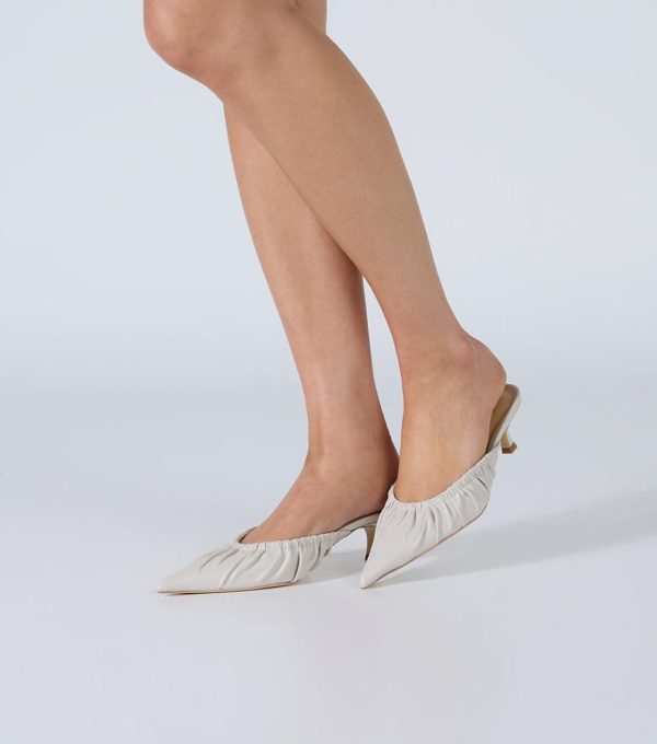 Keep sassy in Kitana. With a classic silhouette and open back, this low heeled mule keeps it fun with a round shaped vamp and scrunch detailing.