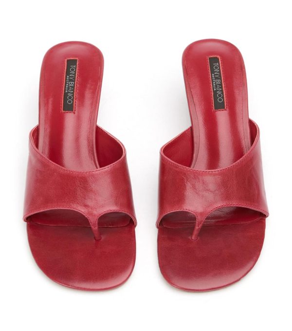 Summer styling requires the perfect heeled flip flop, let Kruz be your next essential. Featuring a versatile kitten heel, slip-on mule design, red leather finish and subtle toe-strap, this style will keep your outfit seemingly effortless.