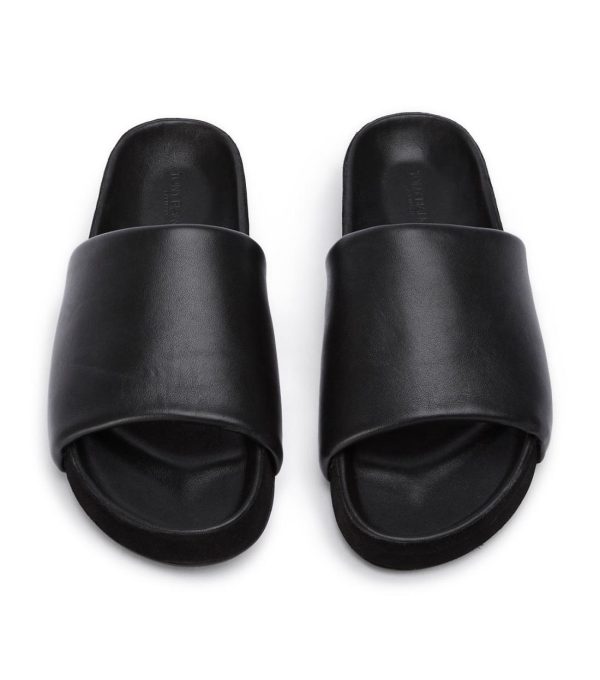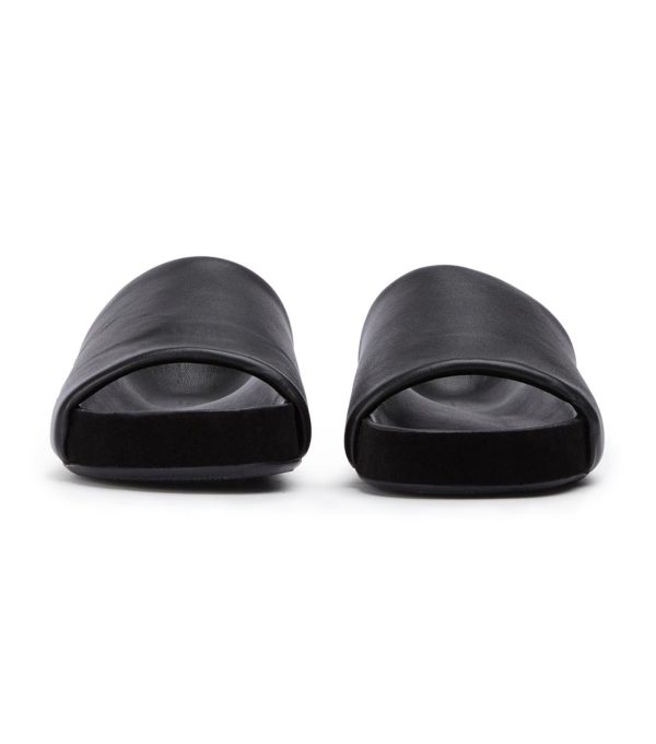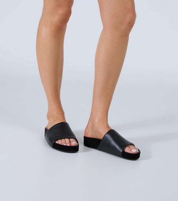 Introducing Nikola, the timeless and everyday sandal. This black slip on features a simple thick leather upper strap and cushioned footbed, making it a go to for summer. She can easily be paired with any outfit for an elevated look.