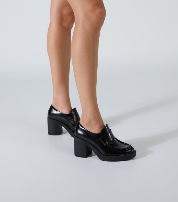 Elevate your ensemble with our chic leather heeled loafer, Nitro. Crafted with a round toe and adorned with subtle stitch details, these shoes effortlessly blend style and sophistication.